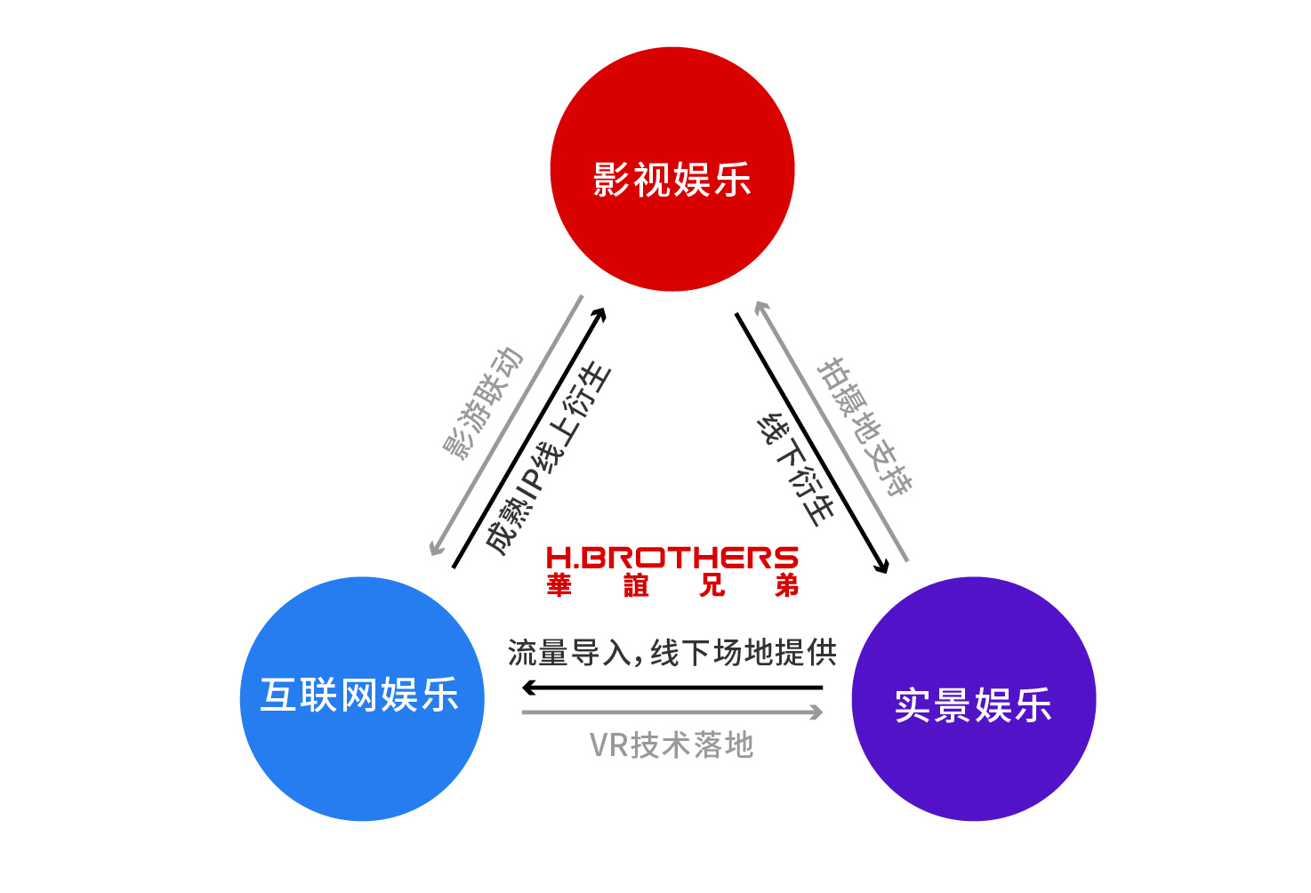 大娱乐生态圈就像是一个促进内容增值和流转的生态系统。在这个系统中,影视娱乐内容可向互联网线上流转,衍生为游戏、网剧、网络大电影、粉丝经济等产品;